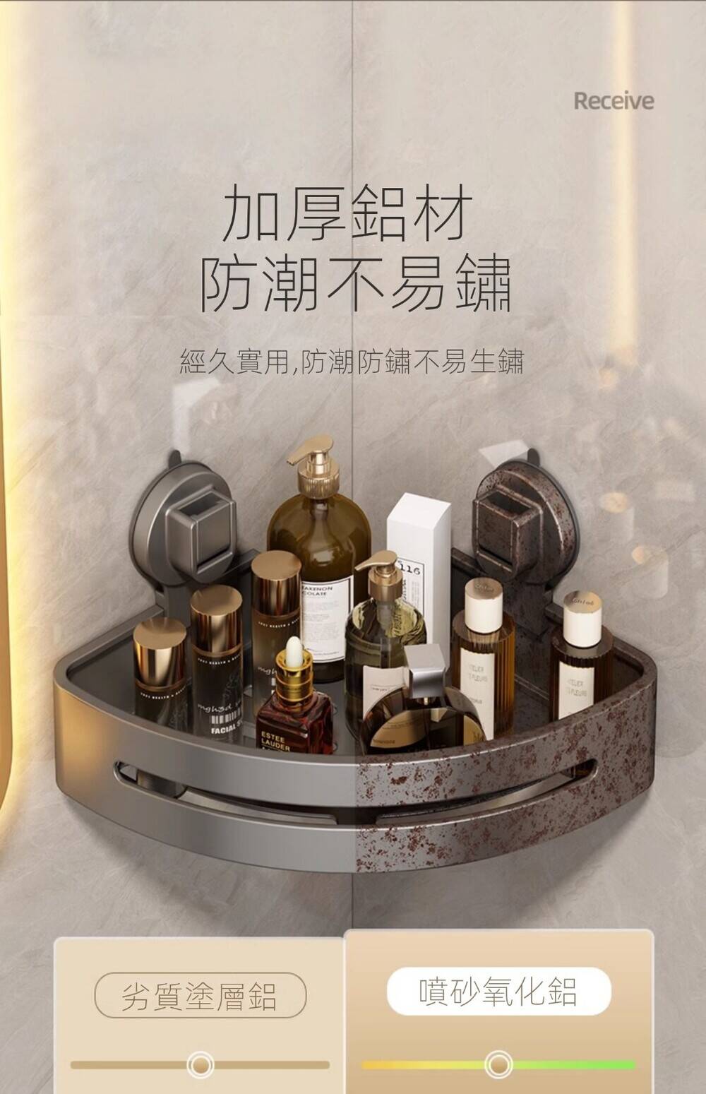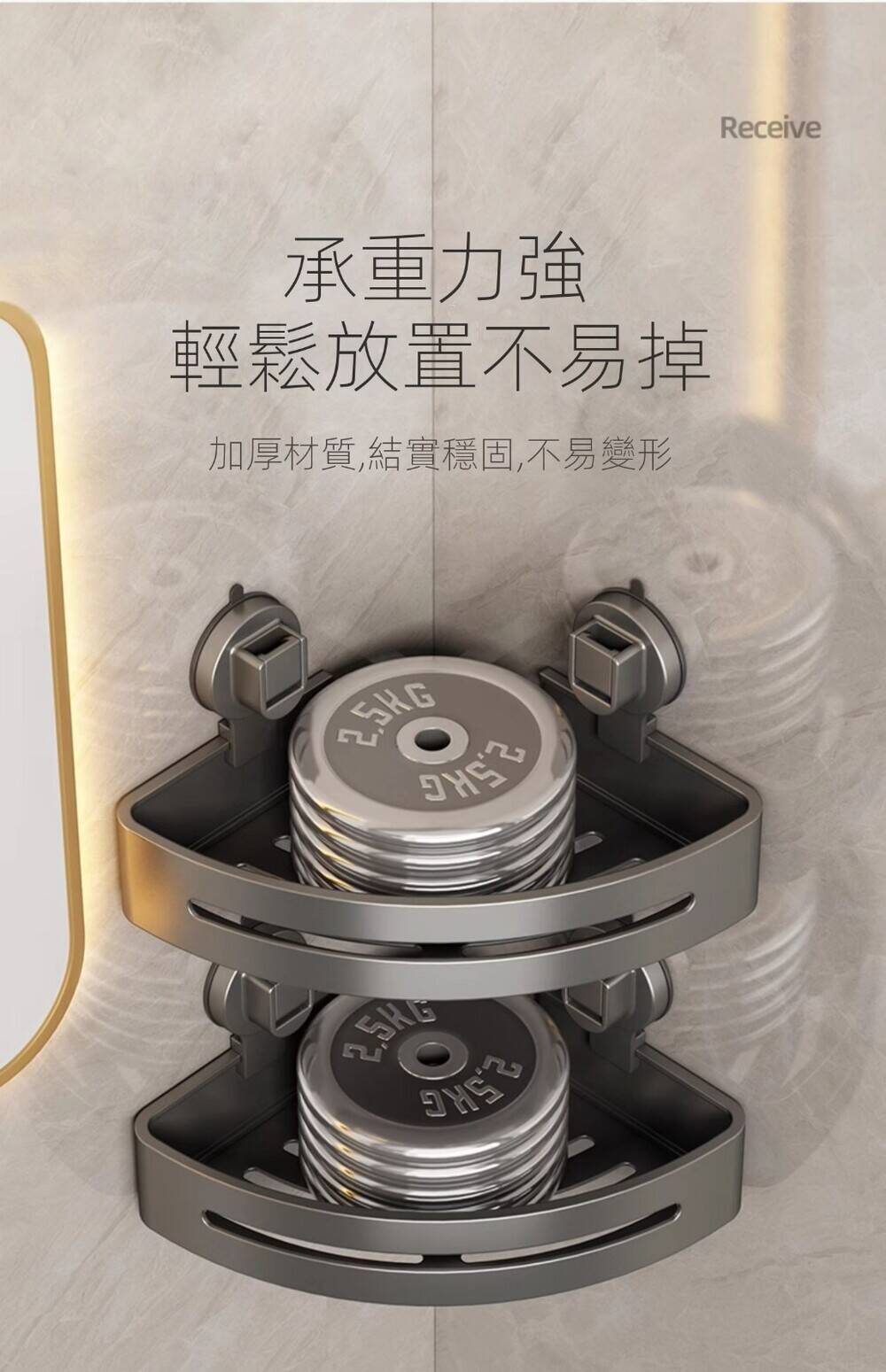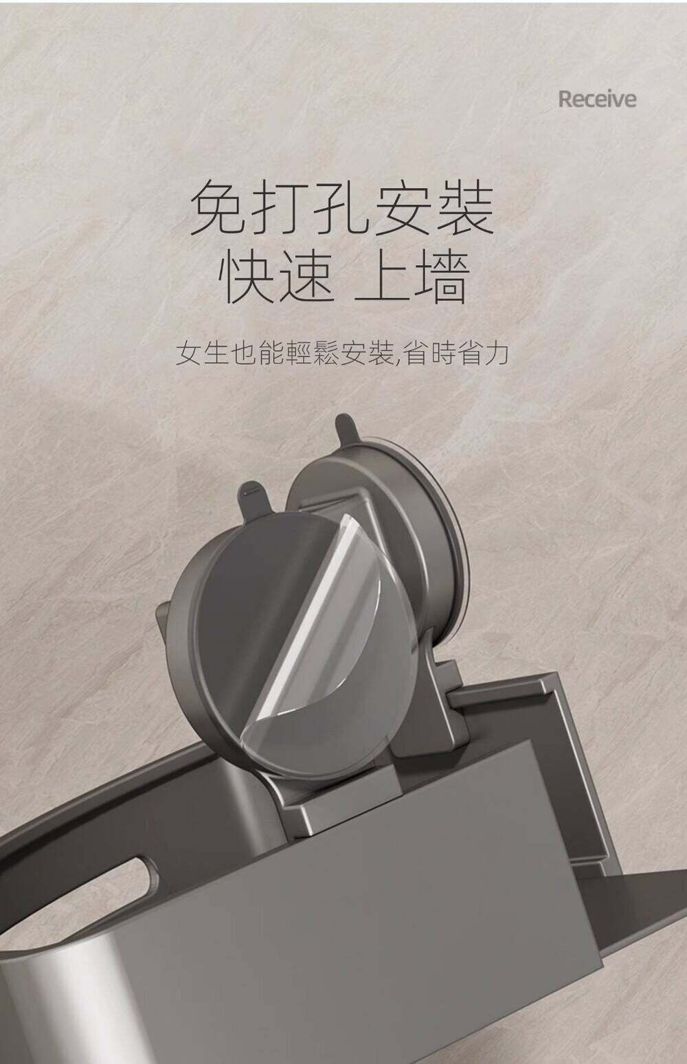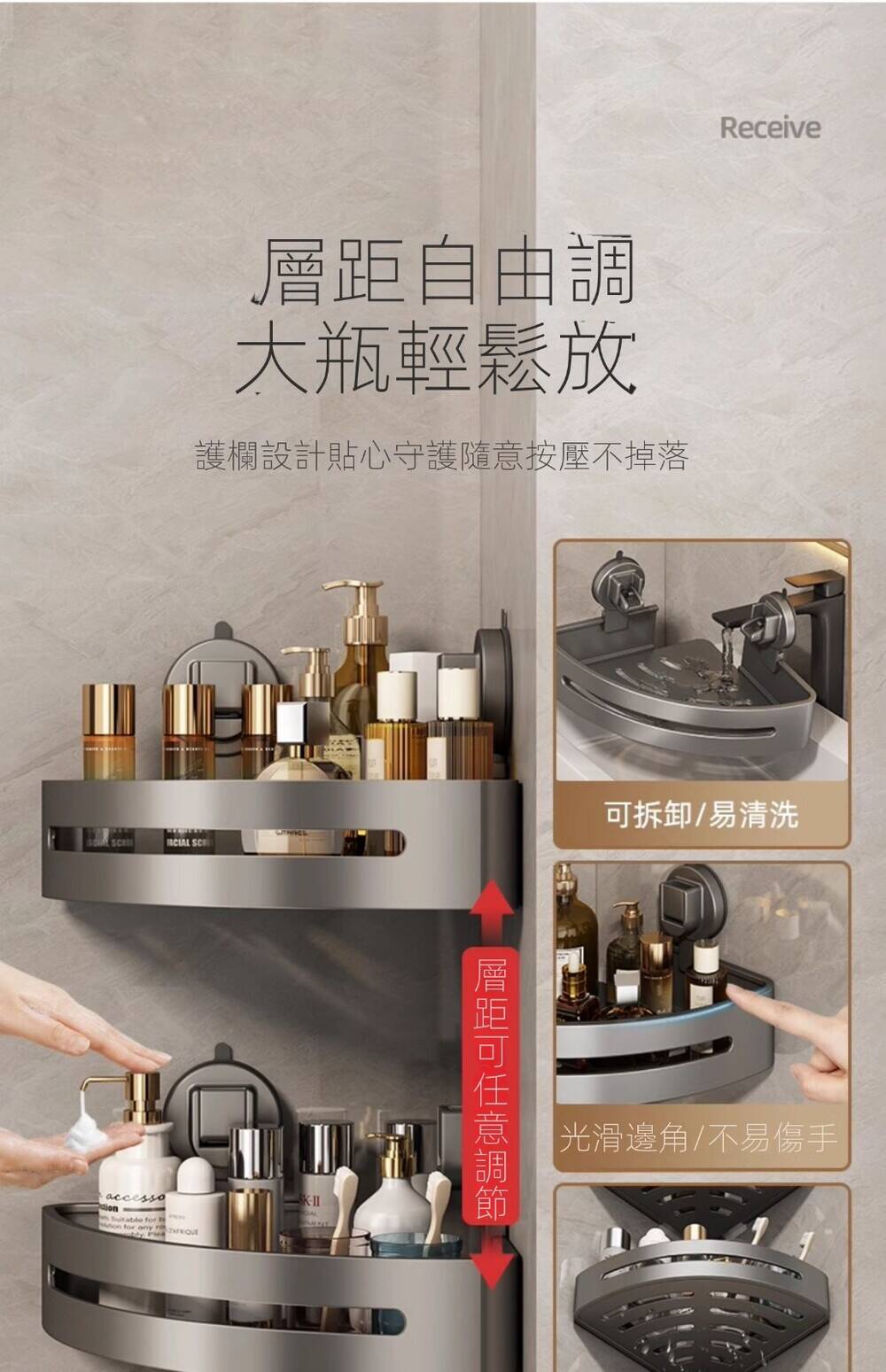 5分鐘前自帶吸盤,可隨時移動重復使用的置物架 免打孔廚房浴室衛生間三角置物架多用途壁掛收納架毛巾架 - 【超夯下殺】買一送二,共三入組 NT$998