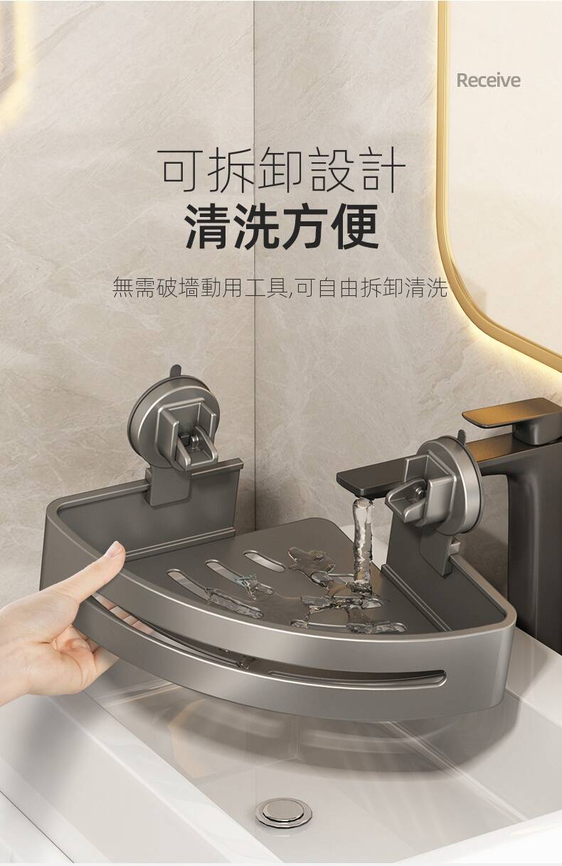 2分鐘前自帶吸盤,可隨時移動重復使用的置物架 免打孔廚房浴室衛生間三角置物架多用途壁掛收納架毛巾架 - 【超夯下殺】買一送二,共三入組 NT$998