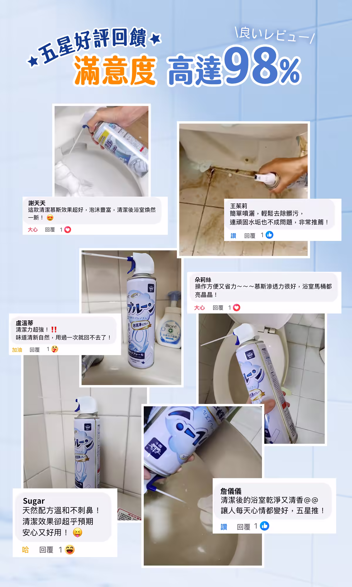 20分鐘前雪泡淨浴廁清潔慕斯 ,馬桶不刷也能亮 , 浴室清潔一瓶搞定 - 【買三送二】【MokoClean雪泡淨】5入組,細緻泡沫滲透每個角落 免運 NT$990