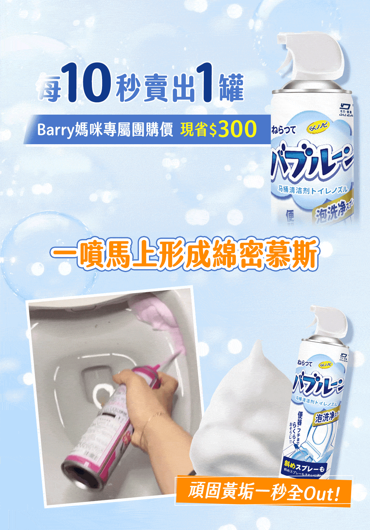 4分鐘前雪泡淨浴廁清潔慕斯 ,馬桶不刷也能亮 , 浴室清潔一瓶搞定 - 【買三送二】【MokoClean雪泡淨】5入組,細緻泡沫滲透每個角落 免運 NT$990